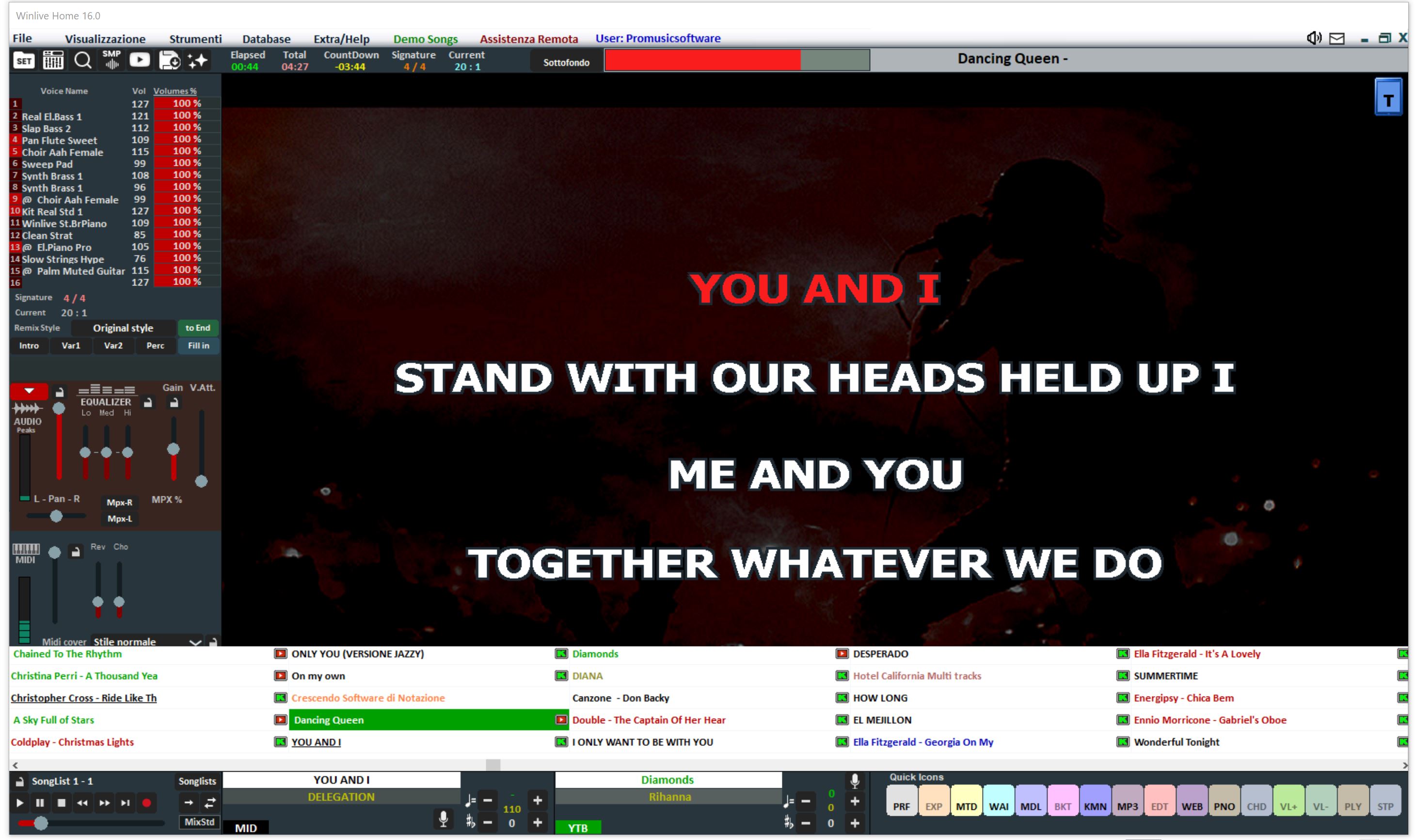 - Management of your repertoire divided into 39 songlists + 1 temporary so that you can save and later quickly recall your songs with all the changes you have made.