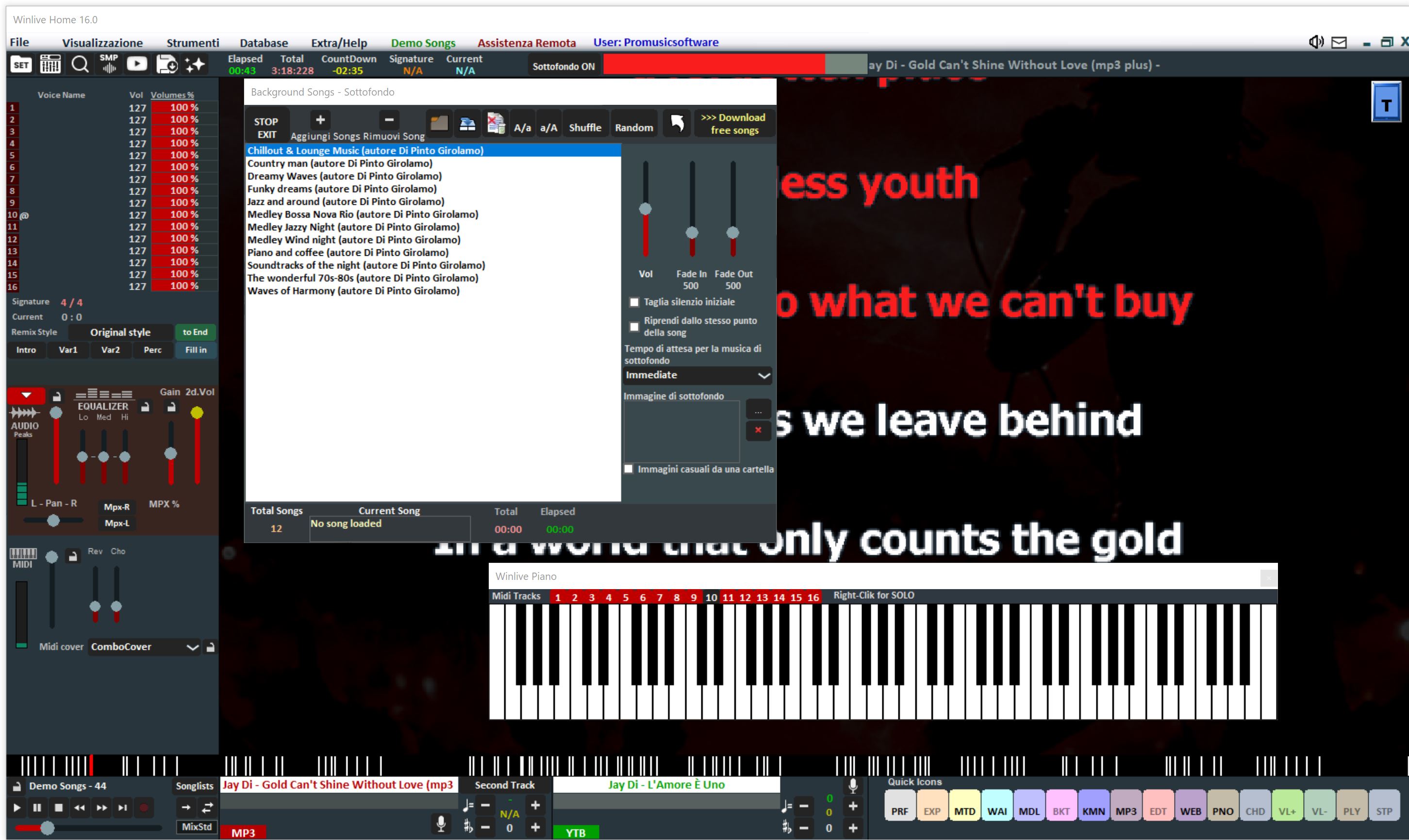 - Book with fade out or mixing between Audio song and Midi